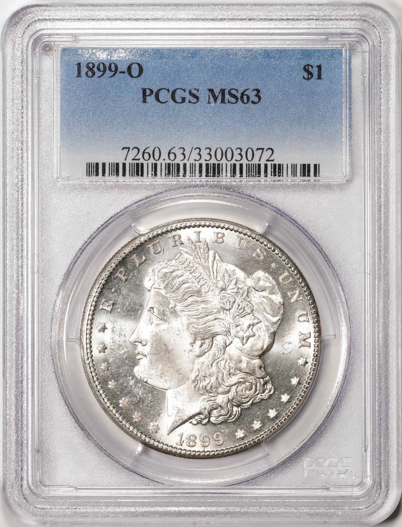 One 1899-O $1 Morgan Silver Dollar Coin PCGS MS63. PCGS Graded.