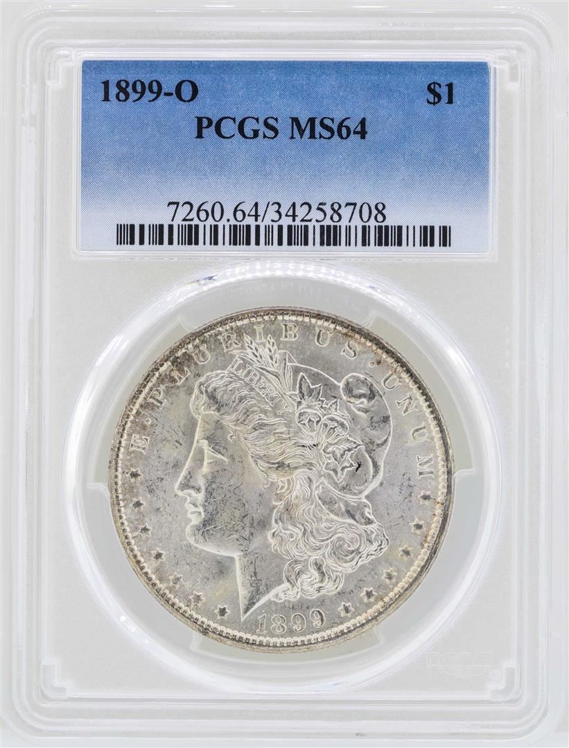 One 1899-O $1 Morgan Silver Dollar Coin PCGS MS64. PCGS Graded.