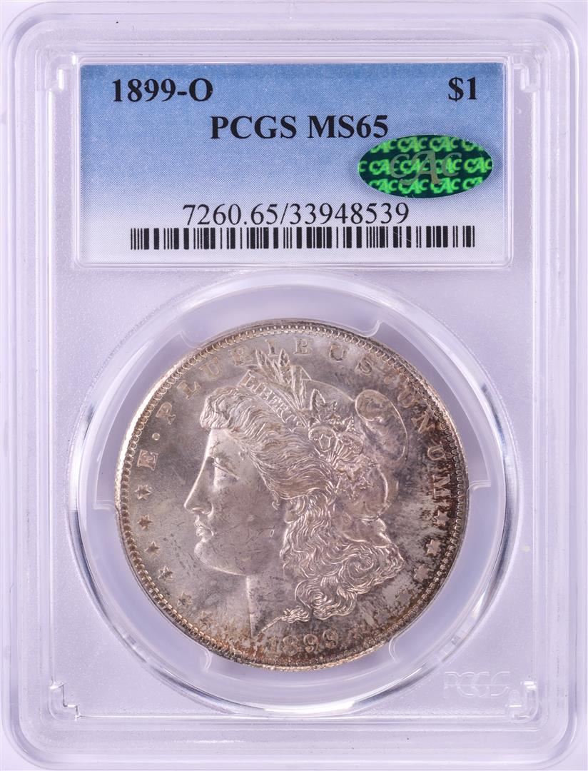 One 1899-O $1 Morgan Silver Dollar Coin PCGS MS65 CAC. PCGS Graded.