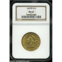 <table><tr><td><TABLE cellSpacing=0 cellPadding=0 width="100%" bgColor=#000000 border=0><TBODY> <TR><TD width="100%"><TABLE cellSpacing=1 cellPadding=3 width="100%" border=0><TBODY><TR><TD width="100%" bgColor=#79735c><FONT face=arial color=#ffffff size=3><B>Description</B> </FONT></TD></TR><TR><TD width="100%" bgColor=#ffffff><FONT face=arial size=2><B>1899-O $10 MS62 NGC.</B></I> A well struck example that has good luster and moderately abraded fields. Although only 37,047 pieces were struck, the 1899-O Eagle is not a rarity in scuffy Uncirculated condition. However, it becomes very scarce as it approaches the Select status. Population: 5 in 62, 5 finer (7/03). </FONT></TD></TR></TBODY></TABLE></TD></TR></TBODY></TABLE><BR><A name=PricesRealized></A><TABLE cellSpacing=0 cellPadding=0 width="100%" bgColor=#000000 border=0><TBODY><TR><TD width="100%"><TABLE cellSpacing=1 cellPadding=3 width="100%" border=0><TBODY><TR><TD width="100%" bgColor=#79735c><A name=PR><FONT face=arial color=#ffffff size=3><B>Previous Prices from Heritage Auctions</B> </FONT></A></TD></TR><TR><TD bgColor=#f6f6ed><TABLE cellSpacing=0 cellPadding=0 width="100%" border=1><TBODY><TR><TD align=middle width="33%"><B>Date</B></TD><TD align=middle width="33%"><B>Service</B></TD><TD align=middle width="33%"><B>Price</B></TD></TR><TR bgColor=whitesmoke><TD width="33%"><B>02/01/1999</B></TD><TD width="33%">PCGS</TD><TD width="33%">$1,208.00</TD></TR></TBODY></TABLE></TD></TR><TR><TD bgColor=#ffffff><FONT face=arial size=1 ?>PLEASE NOTE: All prices realized reflect the final hammer price PLUS the buyer's premium in auctions that charge a buyer's premium. Each item has a notation at the top of the listing indicating whether that lot included a buyer's premium. Example: A item that sells with a final hammer price of $100 and a 20% buyer's premium will display with a price realized of $120. All information listed is intended to be as accurate as possible, but errors are possible. Please use this guide carefully and inform us of any inaccuracies. </FONT></TD></TR></TBODY></TABLE></TD></TR></TBODY></TABLE><BR><TABLE cellSpacing=0 cellPadding=0 width="100%" bgColor=#000000 border=0><TBODY><TR><TD width="100%"><TABLE cellSpacing=1 cellPadding=3 width="100%" border=0><TBODY><TR><TD width="100%" bgColor=#79735c colSpan=6><FONT face=arial color=#ffffff size=3><B>Price Guide*</B> </FONT></TD></TR><TR bgColor=#f6f6ed><TD align=middle><B>Grade</B> </TD><TD align=middle><B>Coin World<BR>(Trends)</B> </TD><TD align=middle><B>Numismedia<BR>Retail</B> </TD><TD align=middle><B>Numismedia<BR>Wholesale</B> </TD><TD align=middle><B>Coin<BR>Universe</B> </TD><TD align=middle><B>Heritage<BR>Value Index</B> </TD></TR><TR bgColor=#ffffff><TD align=middle>61</TD><TD align=right>---</TD><TD align=right>$630.00</TD><TD align=right>$500.00</TD><TD align=right>$750.00</TD><TD align=right>$705.13</TD></TR><TR style="FONT-WEIGHT: bold" bgColor=#cccfdd><TD align=middle>62</TD><TD align=right>$1,150.00</TD><TD align=right>---</TD><TD align=right>$1,650.00</TD><TD align=right>$1,100.00</TD><TD align=right>$1,154.00</TD></TR><TR bgColor=#ffffff><TD align=middle>63</TD><TD align=right>$3,600.00</TD><TD align=right>---</TD><TD align=right>$2,250.00</TD><TD align=right>$3,450.00</TD><TD align=right>$2,527.00</TD></TR><TR bgColor=#ffffff><TD colSpan=6><FONT size=1>*All information listed is intended to be as accurate as possible, but errors are possible. No item may be returned or refused based on this information which is provided as a service to our customers. You should contact each pricing source directly to determine the accuracy of this information. </FONT></TD></TR></TBODY></TABLE></TD></TR></TBODY></TABLE><BR><TABLE cellSpacing=0 cellPadding=0 width="100%" bgColor=#000000 border=0><TBODY><TR><TD width="100%"><TABLE cellSpacing=1 cellPadding=3 width="100%" border=0><TBODY><TR><TD width="100%" bgColor=#79735c><FONT face=arial color=#ffffff size=3><B>Population Guide</B> </FONT></TD></TR><TR bgColor=#ffffff><TD align=middle><!-- Begin Output of Population Grid--><TABLE cellSpacing=0 cellPadding=0 width="100%" border=0><TBODY><TR><TD vAlign=center><TABLE cellSpacing=0 width="100%" border=1 cellsadding="3"><TBODY><TR><TD vAlign=center><TABLE cellSpacing=0 cellPadding=3 width="100%" border=1><TBODY><TR><TD vAlign=center align=middle bgColor=#f0f1e8 colSpan=2 <CENTER><FONT face=Arial size=2><B>PCGS Pop </B></FONT><CENTER></CENTER></TD><TD vAlign=center align=middle bgColor=#f0f1e8 colSpan=2><CENTER><FONT face=Arial size=2><B>NGC Pop</B></CENTER></FONT></TD></TR><TR><TD vAlign=center><FONT face=Arial size=2>(62)</FONT> </TD><TD vAlign=center align=right><FONT face=Arial size=2>12</FONT> </TD><TD vAlign=center><FONT face=Arial size=2>(62)</FONT> </TD><TD vAlign=center align=right><FONT face=Arial size=2>5</FONT> </TD></TR><TR><TD vAlign=center><FONT face=Arial size=2>(>62)</FONT> </TD><TD vAlign=center align=right><FONT face=Arial size=2>10</FONT> </TD><TD vAlign=center><FONT face=Arial size=2>(>62)</FONT> </TD><TD vAlign=center align=right><FONT face=Arial size=2>5</FONT> </TD></TR></TBODY></TABLE></TD></TR></TBODY></TABLE></TD></TR></TBODY></TABLE><!-- End Output of Population Grid--></TD></TR></TBODY></TABLE></TD></TR></TBODY></TABLE><BR><TABLE cellSpacing=0 cellPadding=0 width="100%" bgColor=#000000 border=0><TBODY><TR> Important notice: Heritage usually auctions material at the rate of 200-250 lots per hour. On some occasions eBay Live bid software or the Internet may not be able to keep up with the pace of the auction. We recommend placing a realistic absentee bid now as insurance to avoid disappointment. Occasionally the auctioneer may eliminate or reject an eBay Live bid, and the auctioneer may also reopen a lot after the close of the eBay live bidding (usually because we missed an audience bid), and may reject your bid even if it shows you as the winning bidder. By bidding via eBay Live, you agree that Heritage may award the lot to another bidder at its so