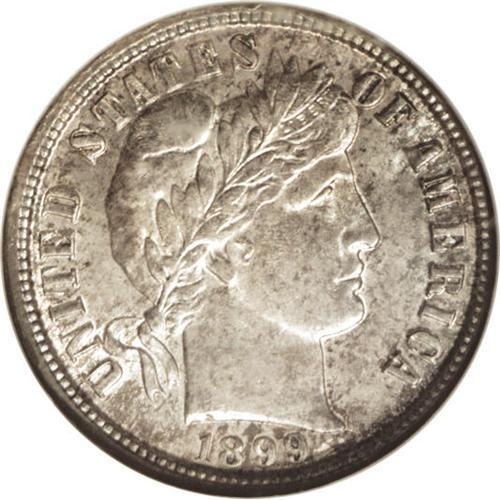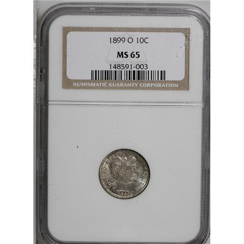 1899-O 10C MS65 NGC. Moderately and originally toned,