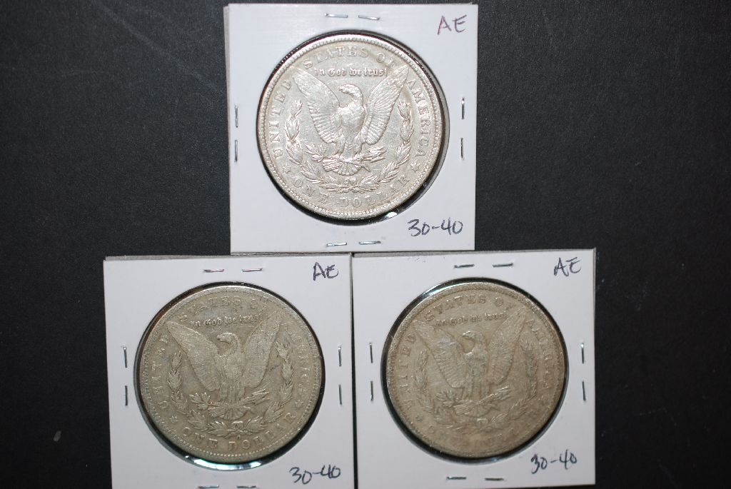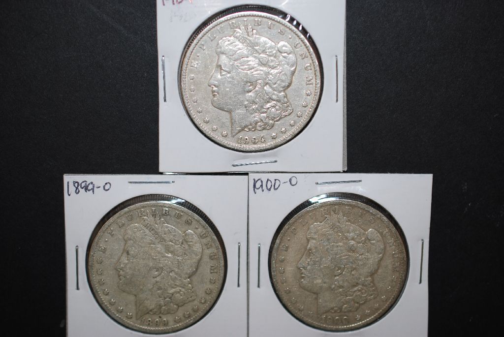 1899-O, 1900-O & 1904 US Silver Morgan $1; Lot of 3; EST. $100-120