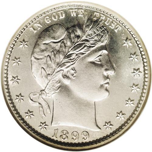 <B>1899-O<25C> MS65 NGC.</B></I> For the Barber quarter dollar aficionado, this Gem Mint State example will be a pleasure to own. The surfaces are fully brilliant and the design detail is boldly defined. The only exception is the feathers in the arrow cluster on the reverse. Just eight finer examples have been certified by PCGS and NGC combined, and we cannot imagine any with finer aesthetic appeal.