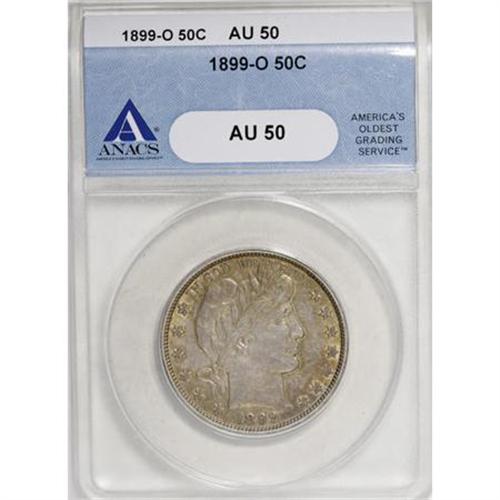 <B>1899-O 50C AU50 ANACS.</B></I> NGC Census: (4/55). PCGS Population (3/98). Mintage: 1,724,000. Numismedia Wsl. Price for NGC/PCGS coin in AU50: $304. (#6484)<BR><BR><B>Coin Engraver:</B> Charles E. Barber<BR><BR><b>Shipping:</b> Coins & Currency (<a target="_blank" href="http://www.heritageauctions.com/common/shipping.php">view shipping information</a>)