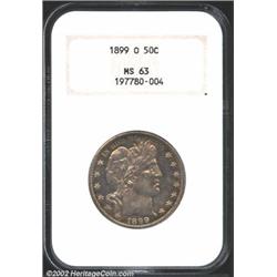 1899-O 50C MS63 NGC. Decidedly prooflike with attractive golden-brown and powder-blue patina. The re