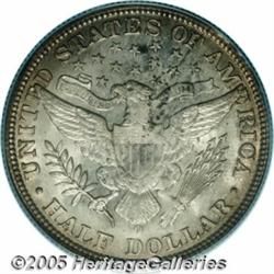 <B>1899-O 50C MS64 PCGS.</B></I> An originally toned example of this relatively low mintage issue, of which only 1.7 million pieces were produced. This example shows slight softness of detail, but the satiny mint luster glows strongly through the gray-lilac toning on the obverse, which is several shades lighter, in fact almost brilliant, on the reverse. There are a few light abrasions on the cheek of Liberty, but these are well concealed by the medium density toning on the obverse. Population: 19 in 64, 9 finer (2/05).