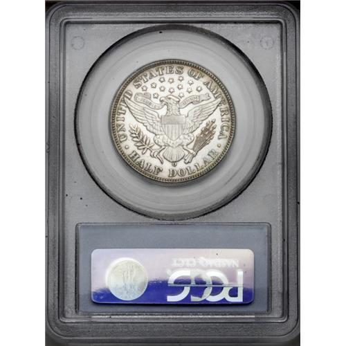 <B>1899-O<50C> MS65 PCGS.</B></I> David Lawrence, in his <I>The Complete Guide to Barber Halves,</B></I> writes that this date "Sometimes comes P/L." There is no denying that this is the case for the present example. Moreover, a cameo-like effect results when the coin is rotated under a light source. The design features are nicely brought up, except for minor softness in the upper right (facing) corner of the shield and the adjacent feathers. The essentially untoned centers gently transition into delicate orange-rust and aqua-green patina along the peripheries. Nicely preserved surfaces characterize each side, though a couple of minuscule ticks on the shield and some wispy slide marks on Liberty's cheek are noted for accuracy. Population: 5 in 65, 6 finer (3/06). <BR><BR><B>Important notice:</B> Heritage usually auctions material at the rate of 200-250 lots per hour. On some occasions eBay Live bid software or the Internet may not be able to keep up with the pace of the auction. We recommend placing a realistic absentee bid now as insurance to avoid disappointment. Occasionally the auctioneer may eliminate or reject an eBay Live bid, and the auctioneer may also reopen a lot after the close of the eBay live bidding (usually because we missed an audience bid), and may reject your bid even if it shows you as the winning bidder. By bidding via eBay Live, you agree that Heritage may award the lot to another bidder at its sole discretion under the circumstances described above or any other reasonable circumstances. Since eBay bids are not shown to us until we open the lot on the floor, we treat those bids just like floor bids. In most cases the floor responds before the eBay bid is presented to us, due to Internet lag time, so for consistency we have made it a policy that floor bids are always considered first over tie eBay live bids. Also please note that all Heritage lots purchased through eBay Live carry a 20% Buyer's Premium. Please make sure you read the Terms and Conditions before you bid. This lot is being auctioned in conjunction with a live floor auction by Heritage Galleries & Auctioneers. All final auction and invoice information will be supplied by Heritage Galleries & Auctioneers, and all other information should be considered preliminary. Lot:2052 <BR><BR><B>Winning Notification and Billing:</B> After the FINAL session in this auction is complete, Heritage will send e-mail and snail mail invoices. This process normally takes several days. All final auction and invoice information will be supplied by Heritage Galleries & Auctioneers, and all other information should be considered preliminary. <BR><BR>This auction will be conducted on a live auction floor and over the Internet through eBay Live. If you choose to place an absentee bid, please take a moment to <font color='#0000ff'><u><a href='http://pages.ebay.com/liveauctions/help/before/laabsentee.html'>learn how eBay Live absentee bidding works</a></u></font><font color='#000000'>