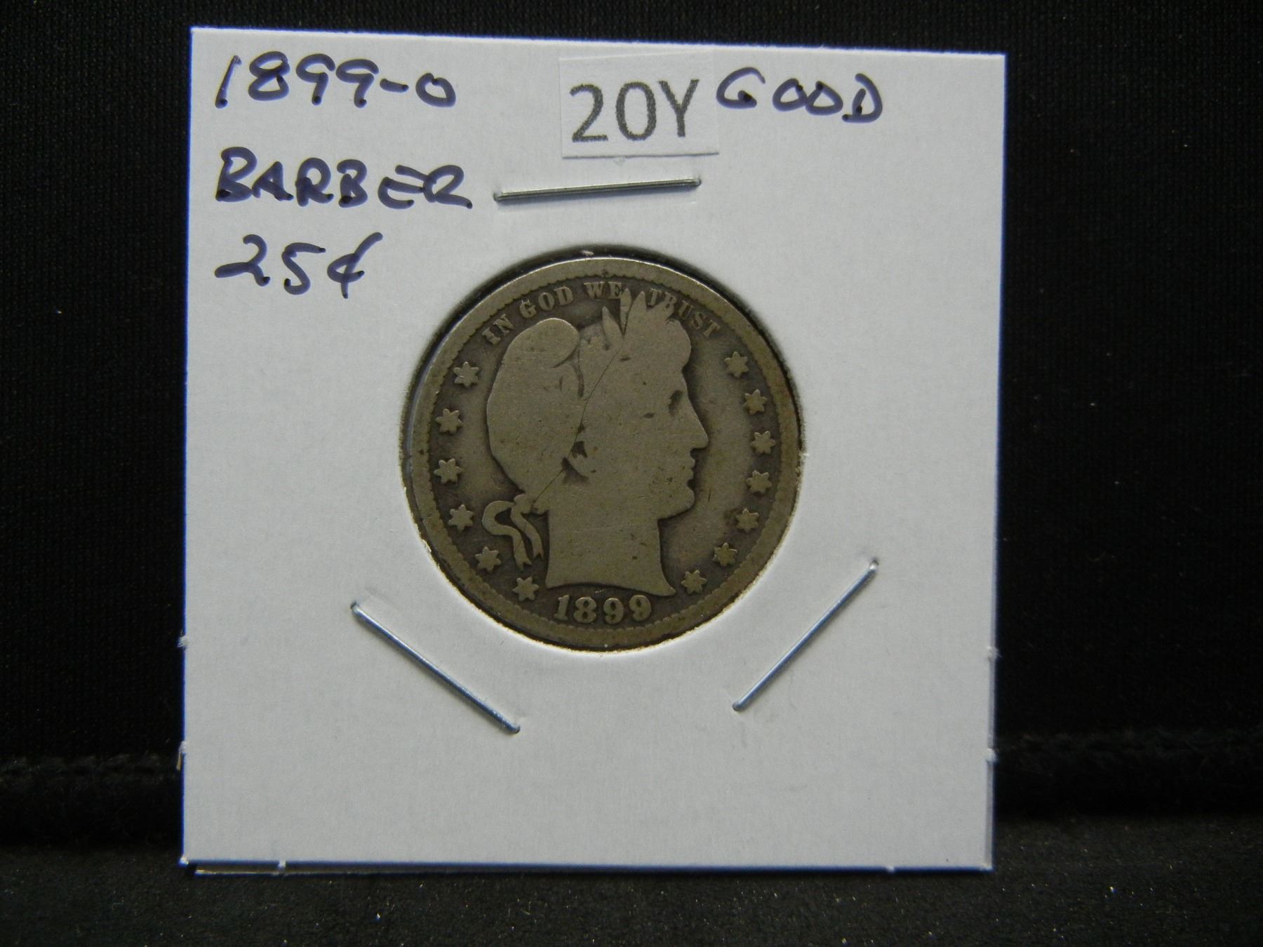 1899-O Barber 25c. Good.