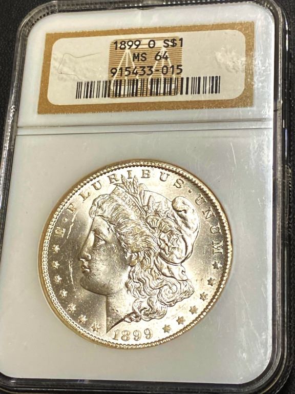 An 1899 New Orleans Mint Mint State 64 NGC Morgan Silver Dollar