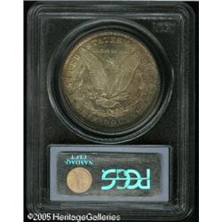 <B>1899-O<img border='0' src='http://www.heritagecoins.com/images/star.gif' width=10 height=10>$1 MS65 PCGS.</B></I> Beautiful iridescent multicolored hues dominated by cobalt-blue occupy the obverse, and several shades of russet cover the reverse. A few minute marks on Liberty's face are mentioned for accuracy. Lot:10546