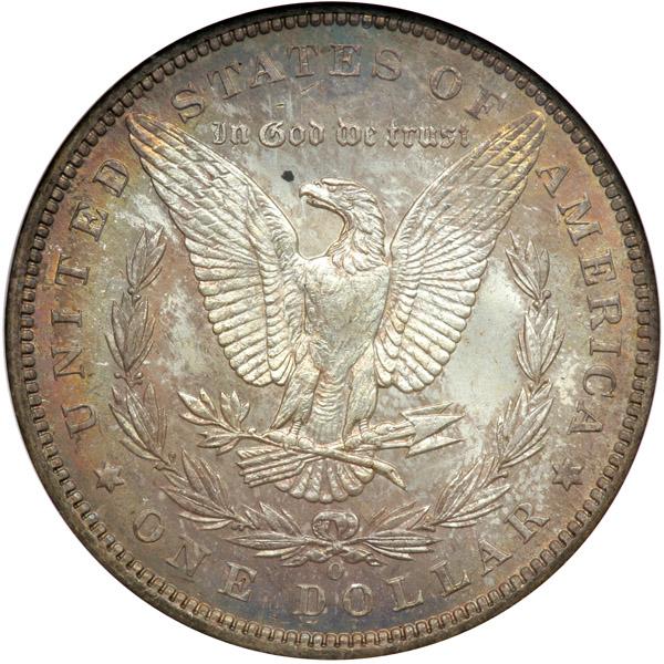 1899-O Morgan Dollar. NGC graded MS-65. Toned on both sides. The reverse displays stunning rainbow toning, check our website to view the colors (PCGS # 7260) .