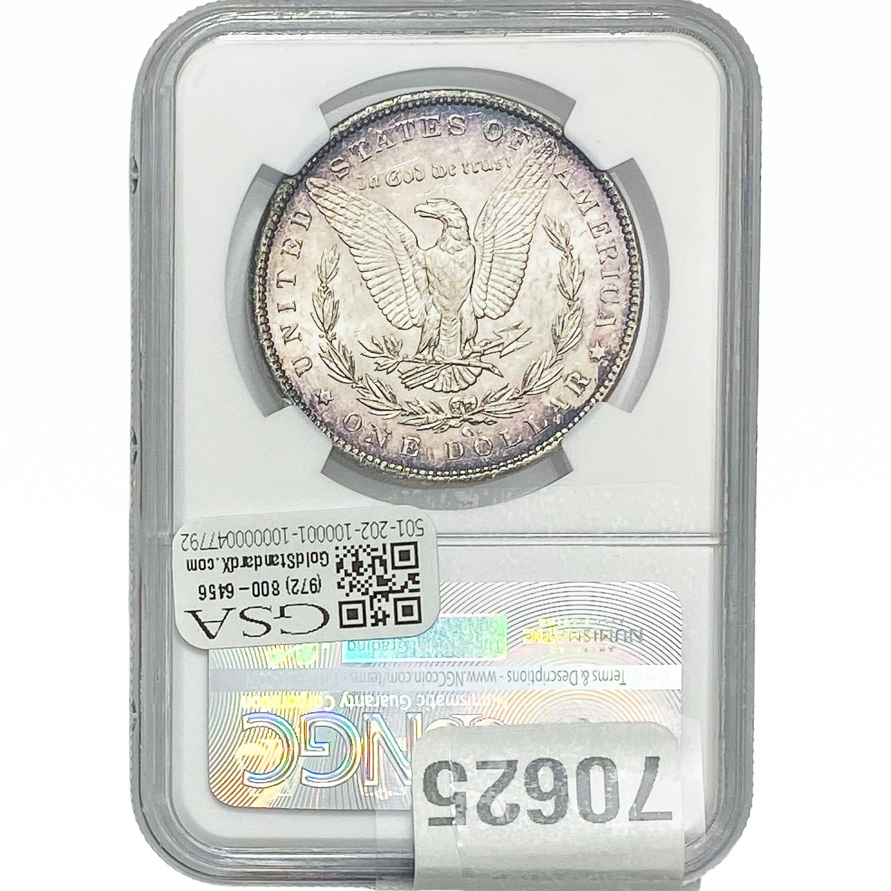 e. Coins sold referencing a third-party grading service are sold “AS IS” without any express or implied warranty, except for a guarantee by GSA that they are genuine. Removal or alteration of the holder, voids all of Bidder’s claims concerning that Product. Certain warranties may be available from the grading services and Bidders are referred to them for further details: Numismatic Guaranty Corporation (NGC), PO Box 4776, Sarasota, FL 34230, www.ngccoin.com/services/writtenguarantee.asp; Professional Coin Grading Services (PCGS), PO Box 9458, Newport Beach, CA 92658, www.pcgs.com/guarantee.html; ANACS, 6555 S. Kenton St., Ste. 303, Englewood, CO 80111; and Independent Coin Grading Co. (ICG), 7901 East Bellview, Ave., Suite 50, Englewood, CO 80111.