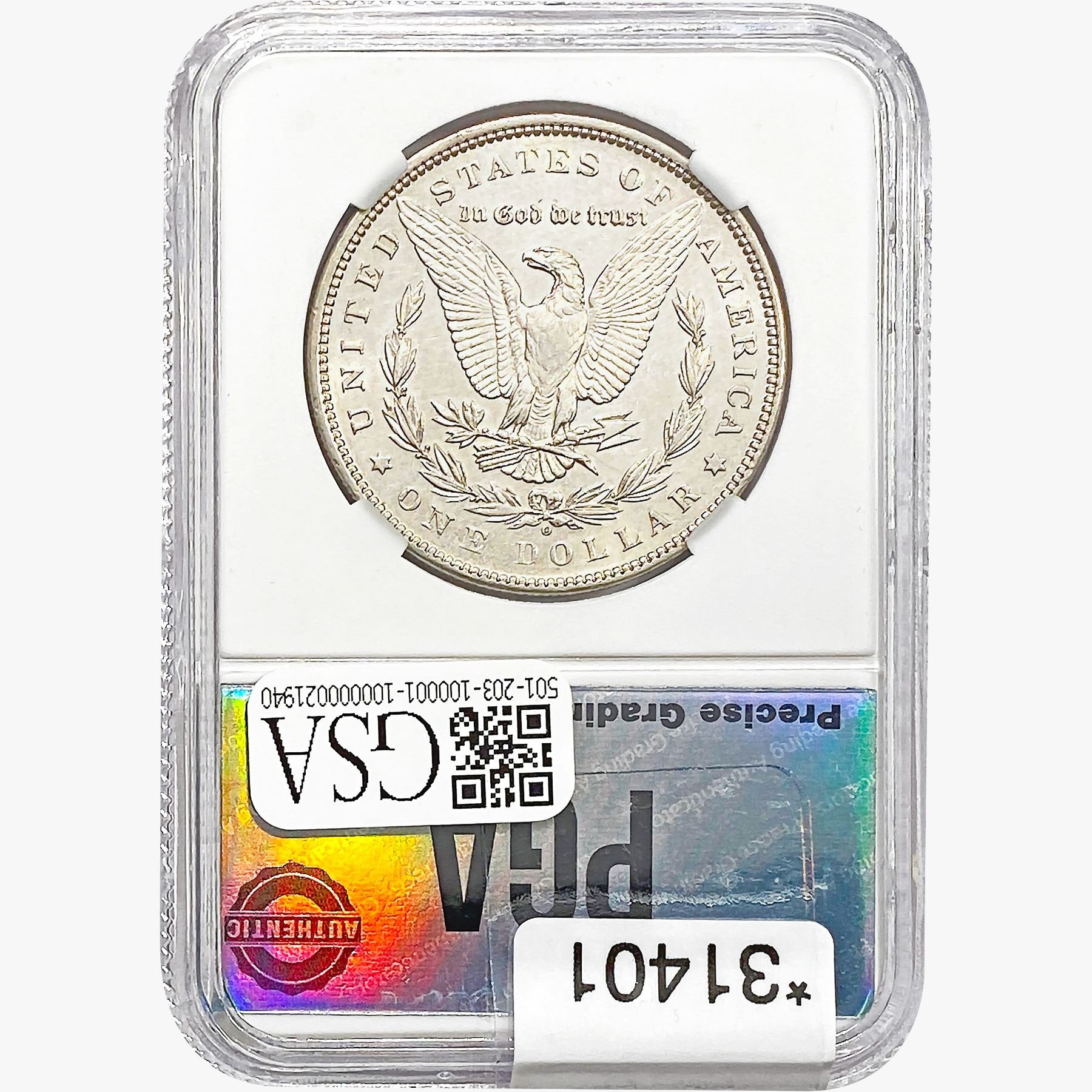 COINS AND CURRENCY LISTED IN GSA’S CATALOG AS GRADED AND ENCAPSULATED BY PCGS, NGC, ANACS, ICG, PCGS CURRENCY, PMG, PCGS BANKNOTE GRADING, CMC OR ANY OTHER THIRD-PARTY GRADING SERVICE ARE LIKEWISE SOLD “AS-IS” EXCEPT AS EXPRESSLY SET FORTH HEREIN. ALL THIRD-PARTY GRADING SERVICE GUARANTEES, INCLUDING AUTHENTICITY, ARE THE SOLE RESPONSIBILITY OF THE THIRD-PARTY GRADING SERVICE AND NOT WARRANTIES OR GUARANTEES OF GSA. BIDDERS SHOULD CONTACT THESE THIRD-PARTY GRADING SERVICES DIRECTLY WITH RESPECT TO ANY CLAIMS OR QUESTIONS THEY MAY HAVE CONCERNING THEIR GUARANTEES AND WARRANTIES. BIDDERS ACKNOWLEDGE AND AGREE THAT AUCTIONEER IS NOT BOUND BY OR LIABLE FOR ANY OPINION OR CERTIFICATION BY ANY THIRD-PARTY GRADING SERVICE. REMOVAL OF A PRODUCT FROM ITS PROTECTIVE CASING OR HOLDER OR ALTERATION OF ANY COIN HOLDER WAIVES ALL RIGHTS CONCERNING THE PRODUCT CONTAINED THEREIN.