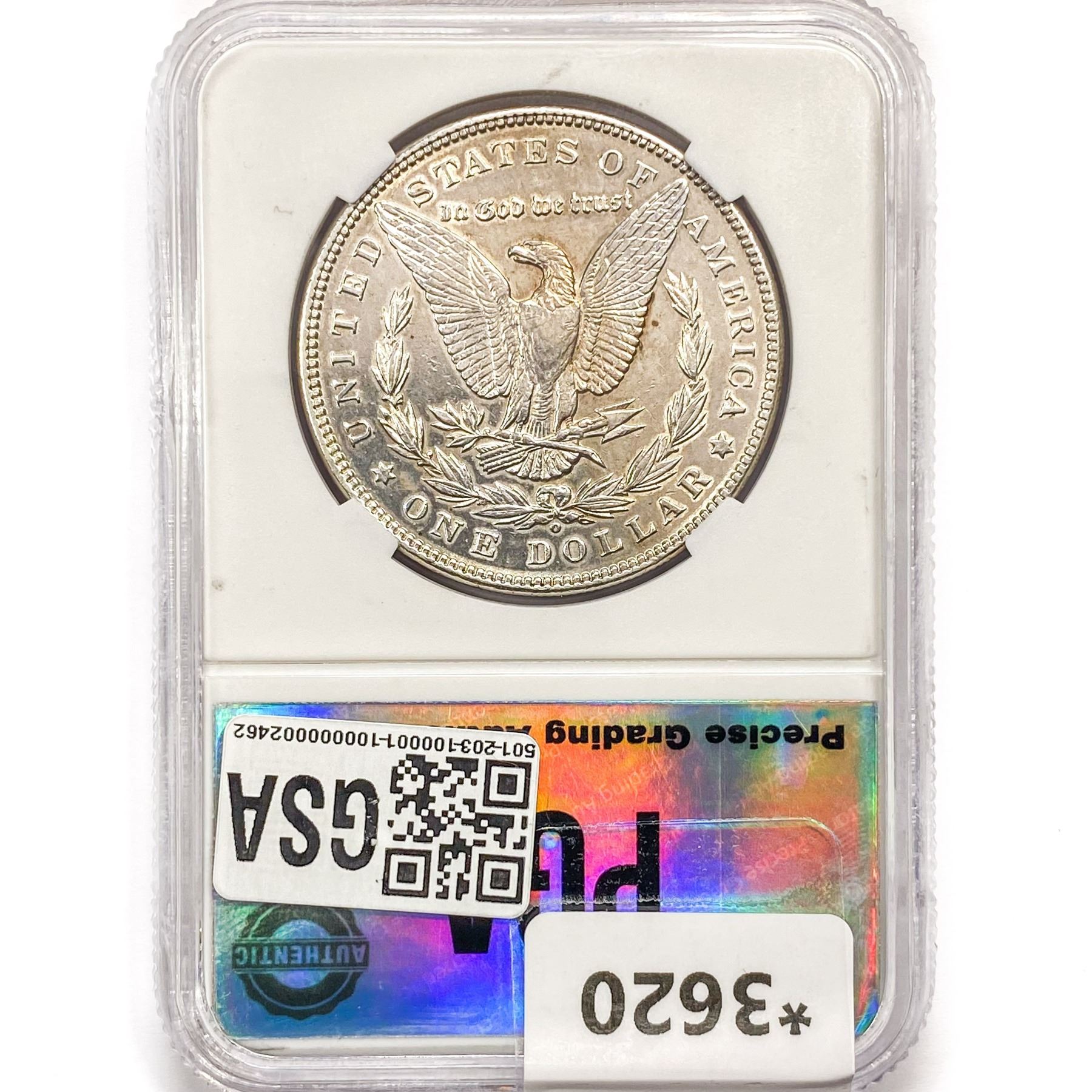 COINS AND CURRENCY LISTED IN GSA’S CATALOG AS GRADED AND ENCAPSULATED BY PCGS, NGC, ANACS, ICG, PCGS CURRENCY, PMG, PCGS BANKNOTE GRADING, CMC OR ANY OTHER THIRD-PARTY GRADING SERVICE ARE LIKEWISE SOLD “AS-IS” EXCEPT AS EXPRESSLY SET FORTH HEREIN. ALL THIRD-PARTY GRADING SERVICE GUARANTEES, INCLUDING AUTHENTICITY, ARE THE SOLE RESPONSIBILITY OF THE THIRD-PARTY GRADING SERVICE AND NOT WARRANTIES OR GUARANTEES OF GSA. BIDDERS SHOULD CONTACT THESE THIRD-PARTY GRADING SERVICES DIRECTLY WITH RESPECT TO ANY CLAIMS OR QUESTIONS THEY MAY HAVE CONCERNING THEIR GUARANTEES AND WARRANTIES. BIDDERS ACKNOWLEDGE AND AGREE THAT AUCTIONEER IS NOT BOUND BY OR LIABLE FOR ANY OPINION OR CERTIFICATION BY ANY THIRD-PARTY GRADING SERVICE. REMOVAL OF A PRODUCT FROM ITS PROTECTIVE CASING OR HOLDER OR ALTERATION OF ANY COIN HOLDER WAIVES ALL RIGHTS CONCERNING THE PRODUCT CONTAINED THEREIN.
