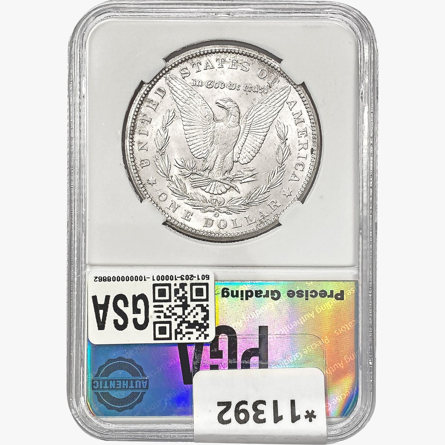 COINS AND CURRENCY LISTED IN GSA’S CATALOG AS GRADED AND ENCAPSULATED BY PCGS, NGC, ANACS, ICG, PCGS CURRENCY, PMG, PCGS BANKNOTE GRADING, CMC OR ANY OTHER THIRD-PARTY GRADING SERVICE ARE LIKEWISE SOLD “AS-IS” EXCEPT AS EXPRESSLY SET FORTH HEREIN. ALL THIRD-PARTY GRADING SERVICE GUARANTEES, INCLUDING AUTHENTICITY, ARE THE SOLE RESPONSIBILITY OF THE THIRD-PARTY GRADING SERVICE AND NOT WARRANTIES OR GUARANTEES OF GSA. BIDDERS SHOULD CONTACT THESE THIRD-PARTY GRADING SERVICES DIRECTLY WITH RESPECT TO ANY CLAIMS OR QUESTIONS THEY MAY HAVE CONCERNING THEIR GUARANTEES AND WARRANTIES. BIDDERS ACKNOWLEDGE AND AGREE THAT AUCTIONEER IS NOT BOUND BY OR LIABLE FOR ANY OPINION OR CERTIFICATION BY ANY THIRD-PARTY GRADING SERVICE. REMOVAL OF A PRODUCT FROM ITS PROTECTIVE CASING OR HOLDER OR ALTERATION OF ANY COIN HOLDER WAIVES ALL RIGHTS CONCERNING THE PRODUCT CONTAINED THEREIN.