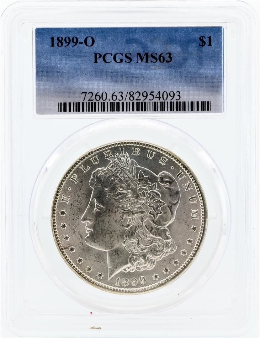 One 1899-O PCGS MS63 Morgan Silver Dollar.