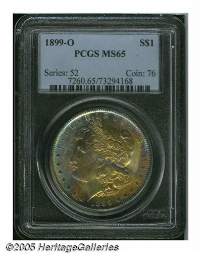 1899-O S$1 MS65 PCGS. Pastel yellow-gold, cobalt-