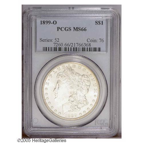 1899-O S$1 MS66 PCGS. An all white, fully lustrous exa 1899-O[S$1] MS66 PCGS.