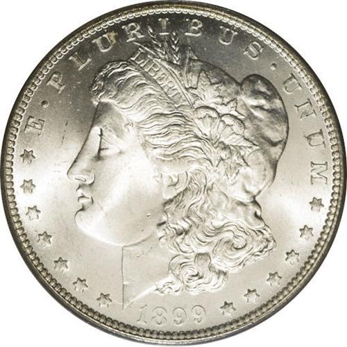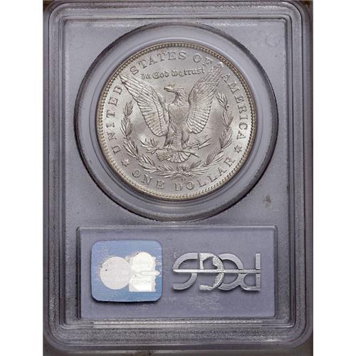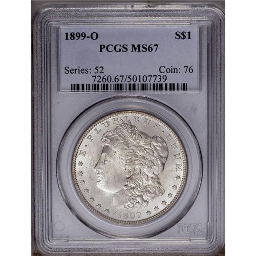 <B>1899-O<img border='0' src='http://www.heritagecoins.com/images/star.gif' width=10 height=10>$1> MS67 PCGS.</B></I> A lustrous and brilliant Superb Gem with impressive luster and exquisite surfaces. The centers are slightly soft in strike, while the often-weak bow of the wreath has excellent detail. By no means a rare issue, but it would take an exhaustive search to find another any finer. Population: 71 in 67, 1 finer (4/06).