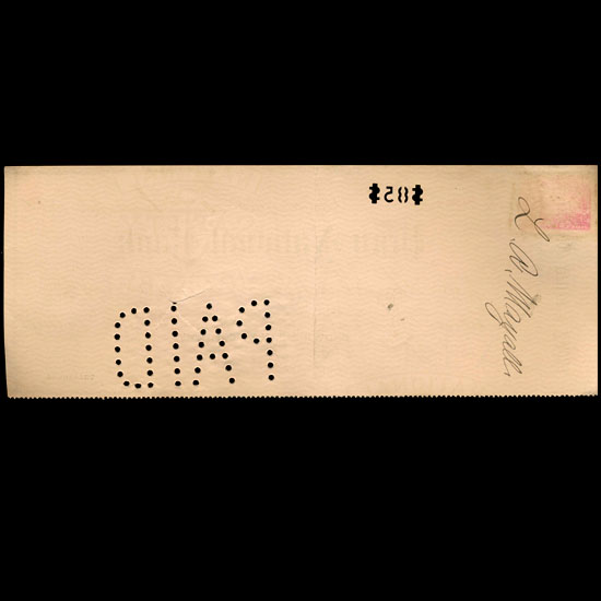 Rare 1898 original bank check drawn on Brown & Bailey; Co. with excellent cut-thru dollar amount cancellation and rare hand cancelled documentary stamp