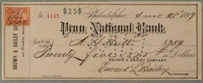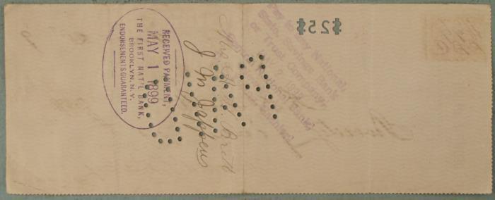 Has a two cent stamp with writingHand signed, numbered and datedReverse has Received stamp from Brooklyn, N.Y.Punch marks for PAID, and $25
