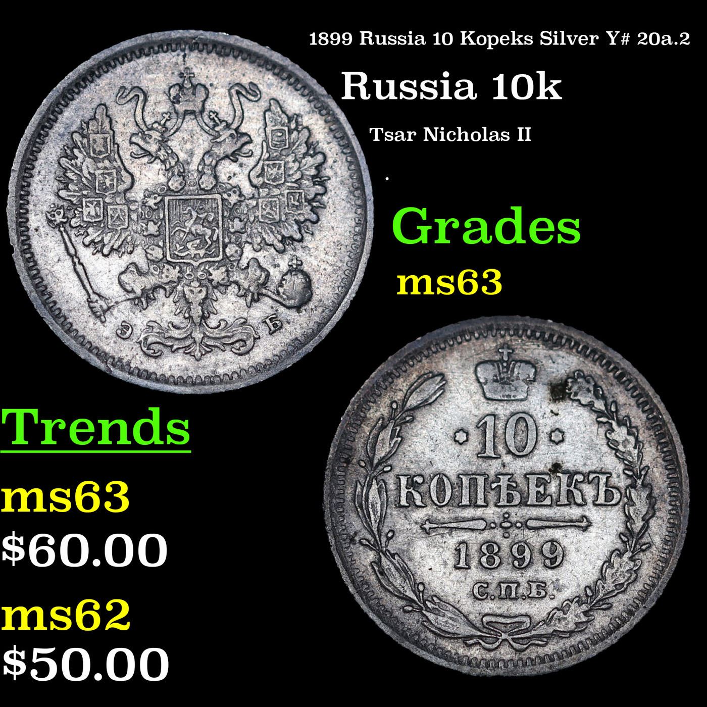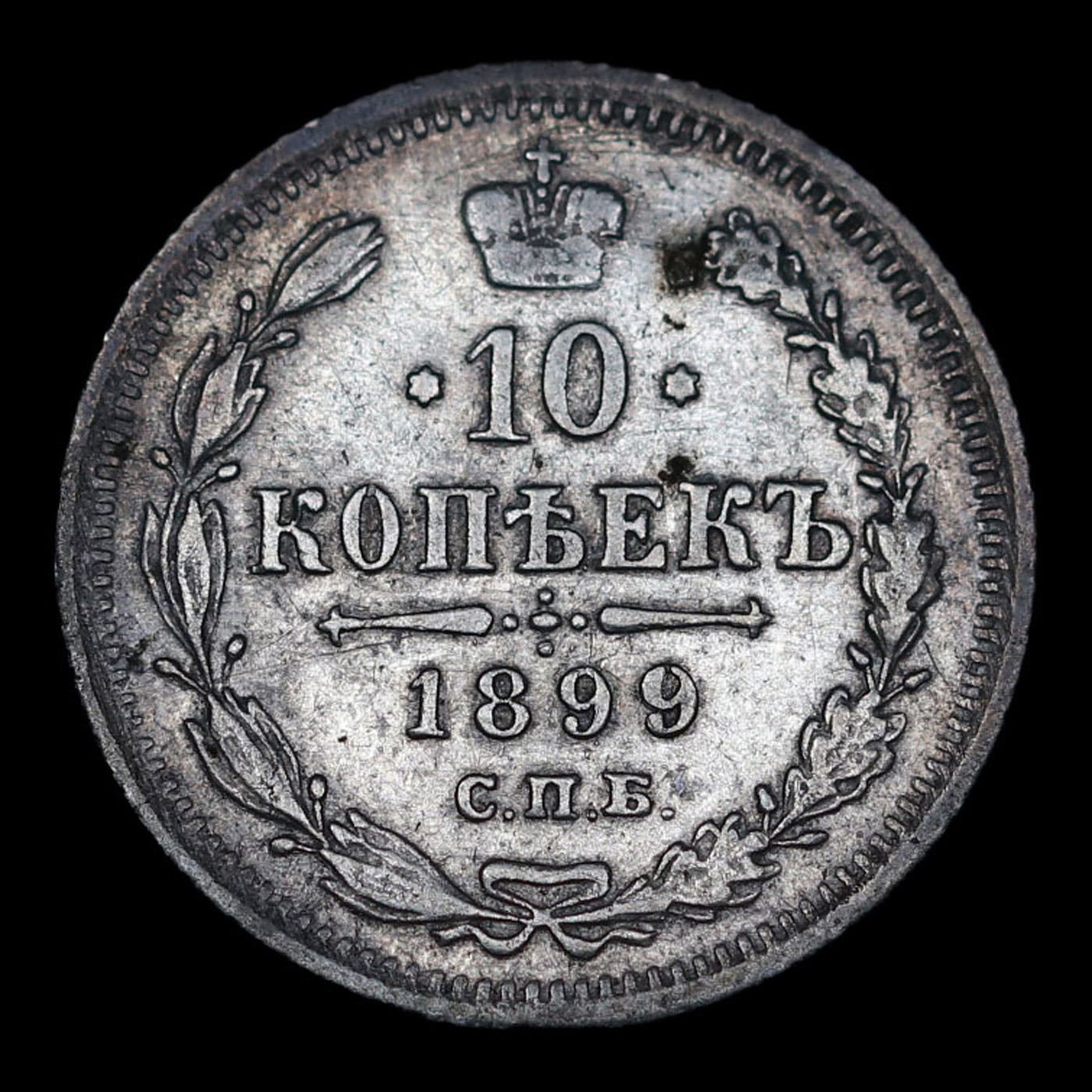 1899 Russia 10 Kopeks Silver Y# 20a.2 Grades Select Unc.