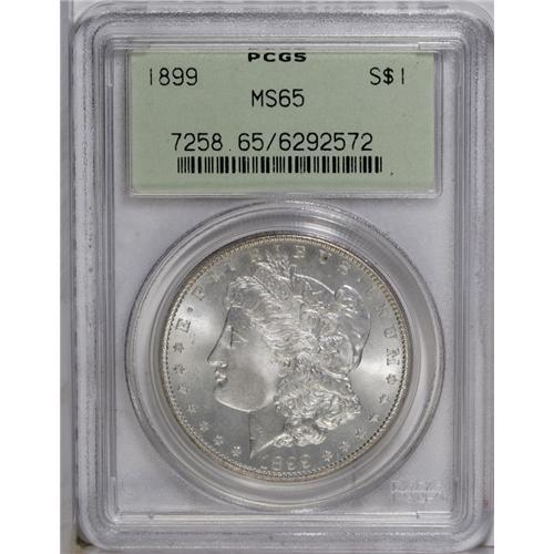 1899 S$1 MS65 PCGS. A sharply struck Gem with only a h