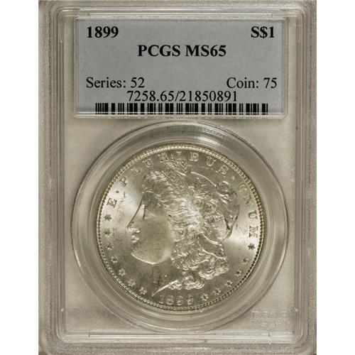 1899 S$1 MS65 PCGS. Sharply struck motifs stand out on