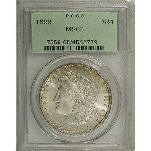 <B>1899 S$1 MS65 PCGS. Wayne Miller Plate Coin.</B></I> Brilliant and lustrous with pale gold toning along the borders. Accompanied by a notarized letter from Wayne Miller, dated July 27, 1978, certifying this to be the plate coin in his book <I>An Analysis of Morgan and Peace Dollars.</B></I> A copy of the book is included.<BR><I>Ex: Steve Ivy (11/1978), lot 829.</B></I><BR><BR><b>Shipping:</b> Coin/Currency (<a target="_blank" href="http://www.heritageauctions.com/common/shipping.php">view shipping information</a>)