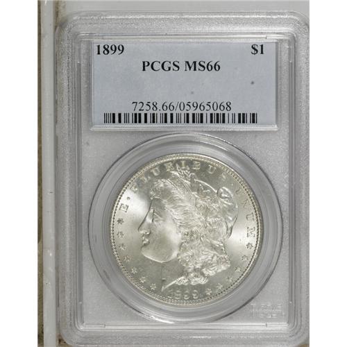<B>1899 S$1 MS66 PCGS.</B></I> A lovely Premium Gem dollar with essentially untoned silver-white surfaces that betray mere traces of milkiness in the fields, under close inspection. Well struck and carefully preserved, with a few minute marks that are too small to inhibit the assigned grade level.<BR><BR><b>Shipping:</b> Coins & Currency (<a target="_blank" href="http://www.heritageauctions.com/common/shipping.php">view shipping information</a>)