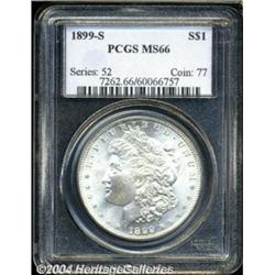 <table><tbody><tr><td><table> <TR><TD width="100%"><TABLE cellSpacing=1 cellPadding=3 width="100%" border=0><TBODY><TR><TD width="100%" bgColor=#79735c><FONT face=arial color=#ffffff size=3><B>Description</B> </FONT></TD></TR><TR><TD width="100%" bgColor=#ffffff><FONT face=arial size=2><B>1899-S $1 MS66 PCGS.</B></I> A Superb, untoned Gem example of this conditionally challenging late date S-mint that shows remarkably clean surfaces for the issue. The strike is equally impressive, being just shy of full on the hair strands over Liberty's ear, and just a few trivial facial disturbances can be detected under magnification.<BR><I>From the Dylan Elijah Collection of Morgan Dollars.</B></I> </FONT></TD></TR></TBODY></TABLE></TD></TR></TBODY></TABLE><BR><A name=PricesRealized></A><TABLE cellSpacing=0 cellPadding=0 width="100%" bgColor=#000000 border=0><TBODY><TR><TD width="100%"><TABLE cellSpacing=1 cellPadding=3 width="100%" border=0><TBODY><TR><TD width="100%" bgColor=#79735c><A name=PR><FONT face=arial color=#ffffff size=3><B>Previous Prices from Heritage Auctions</B> </FONT></A></TD></TR><TR><TD bgColor=#f6f6ed><TABLE cellSpacing=0 cellPadding=0 width="100%" border=1><TBODY><TR><TD align=middle width="33%"><B>Date</B></TD><TD align=middle width="33%"><B>Service</B></TD><TD align=middle width="33%"><B>Price</B></TD></TR><TR bgColor=whitesmoke><TD width="33%"><B>01/07/2004</B></TD><TD width="33%">PCGS</TD><TD width="33%">$2,760.00</TD></TR><TR bgColor=whitesmoke><TD width="33%"><B>01/12/2002</B></TD><TD width="33%">PCGS</TD><TD width="33%">$2,530.00</TD></TR><TR bgColor=whitesmoke><TD width="33%"><B>11/15/2001</B></TD><TD width="33%">PCGS</TD><TD width="33%">$3,450.00</TD></TR><TR bgColor=whitesmoke><TD width="33%"><B>01/05/2001</B></TD><TD width="33%">PCGS</TD><TD width="33%">$1,955.00</TD></TR><TR bgColor=whitesmoke><TD width="33%"><B>10/06/2000</B></TD><TD width="33%">PCGS</TD><TD width="33%">$1,955.00</TD></TR><TR bgColor=whitesmoke><TD width="33%"><B>06/01/1996</B></TD><TD width="33%">PCGS</TD><TD width="33%">$1,991.00</TD></TR><TR bgColor=whitesmoke><TD width="33%"><B>08/19/1995</B></TD><TD width="33%">PCGS</TD><TD width="33%">$2,640.00</TD></TR><TR bgColor=whitesmoke><TD width="33%"><B>08/09/2000</B></TD><TD width="33%">PCGS</TD><TD width="33%">$2,760.00</TD></TR><TR bgColor=whitesmoke><TD width="33%"><B>11/01/1998</B></TD><TD width="33%">PCGS</TD><TD width="33%">$2,300.00</TD></TR><TR bgColor=whitesmoke><TD width="33%"><B>03/01/1999</B></TD><TD width="33%">PCGS</TD><TD width="33%">$2,530.00</TD></TR><TR bgColor=whitesmoke><TD width="33%"><B>05/01/1999</B></TD><TD width="33%">PCGS</TD><TD width="33%">$2,415.00</TD></TR><TR bgColor=whitesmoke><TD width="33%"><B>09/01/1999</B></TD><TD width="33%">PCGS</TD><TD width="33%">$2,300.00</TD></TR><TR bgColor=whitesmoke><TD width="33%"><B>11/01/1998</B></TD><TD width="33%">PCGS</TD><TD width="33%">$2,530.00</TD></TR></TBODY></TABLE></TD></TR><TR><TD bgColor=#ffffff><FONT face=arial size=1 ?>PLEASE NOTE: All prices realized reflect the final hammer price PLUS the buyer's premium in auctions that charge a buyer's premium. Each item has a notation at the top of the listing indicating whether that lot included a buyer's premium. Example: A item that sells with a final hammer price of $100 and a 20% buyer's premium will display with a price realized of $120. All information listed is intended to be as accurate as possible, but errors are possible. Please use this guide carefully and inform us of any inaccuracies. </FONT></TD></TR></TBODY></TABLE></TD></TR></TBODY></TABLE><BR><TABLE cellSpacing=0 cellPadding=0 width="100%" bgColor=#000000 border=0><TBODY><TR><TD width="100%"><TABLE cellSpacing=1 cellPadding=3 width="100%" border=0><TBODY><TR><TD width="100%" bgColor=#79735c colSpan=6><FONT face=arial color=#ffffff size=3><B>Price Guide*</B> </FONT></TD></TR><TR bgColor=#f6f6ed><TD align=middle><B>Grade</B> </TD><TD align=middle><B>Coin World<BR>(Trends)</B> </TD><TD align=middle><B>Numismedia<BR>Retail</B> </TD><TD align=middle><B>Numismedia<BR>Wholesale</B> </TD><TD align=middle><B>Coin<BR>Universe</B> </TD><TD align=middle><B>Heritage<BR>Value Index</B> </TD></TR><TR bgColor=#ffffff><TD align=middle>65</TD><TD align=right>$2,300.00</TD><TD align=right>---</TD><TD align=right>$1,425.00</TD><TD align=right>$2,200.00</TD><TD align=right>$1,511.25</TD></TR><TR style="FONT-WEIGHT: bold" bgColor=#cccfdd><TD align=middle>66</TD><TD align=right>$3,000.00</TD><TD align=right>---</TD><TD align=right>$2,525.00</TD><TD align=right>$3,575.00</TD><TD align=right>$2,254.17</TD></TR><TR bgColor=#ffffff><TD align=middle>67</TD><TD align=right>---</TD><TD align=right>---</TD><TD align=right>$10,000.00</TD><TD align=right>$21,500.00</TD><TD align=right>$13,825.00</TD></TR><TR bgColor=#ffffff><TD colSpan=6><FONT size=1>*All information listed is intended to be as accurate as possible, but errors are possible. No item may be returned or refused based on this information which is provided as a service to our customers. You should contact each pricing source directly to determine the accuracy of this information. </FONT></TD></TR></TBODY></TABLE></TD></TR></TBODY></TABLE><BR><TABLE cellSpacing=0 cellPadding=0 width="100%" bgColor=#000000 border=0><TBODY><TR><TD width="100%"><TABLE cellSpacing=1 cellPadding=3 width="100%" border=0><TBODY><TR><TD width="100%" bgColor=#79735c><FONT face=arial color=#ffffff size=3><B>Population Guide</B> </FONT></TD></TR><TR bgColor=#ffffff><TD align=middle><!-- Begin Output of Population Grid--><TABLE cellSpacing=0 cellPadding=0 width="100%" border=0><TBODY><TR><TD vAlign=center><TABLE cellSpacing=0 width="100%" border=1 cellsadding="3"><TBODY><TR><TD vAlign=center><TABLE cellSpacing=0 cellPadding=3 width="100%" border=1><TBODY><TR><TD vAlign=center align=middle bgColor=#f0f1e8 colSpan=2 <CENTER><FONT face=Arial size=2><B>PCGS Pop </B></FONT><CENTER></CENTER></TD><TD vAlign=center align=middle bgColor=#f0f1e8 colSpan=2><CENTER><FONT face=Ar