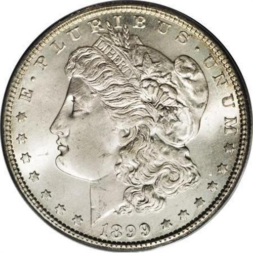 <B>1899-S $1 MS66 PCGS.</B></I> An extremely important opportunity is presented to the advanced Morgan dollar specialist. The 1899-S is usually considered moderately scarce in lower Mint State grades but it presents a major hurdle in grades higher than MS65. This Premium Gem is fully brilliant and lustrous, with silvery-white mint frost and a hint of gold toning on the reverse. Population: 93 in 66, 8 finer (1/08).<BR><I>From The Jimmy G. PCGS Registry Collection of Morgan Dollars with Varieties.</B></I><BR><BR><B>Coin Engraver:</B> George T. Morgan<BR><BR><b>Shipping:</b> Coins & Currency (<a target="_blank" href="http://www.heritageauctions.com/common/shipping.php">view shipping information</a>)