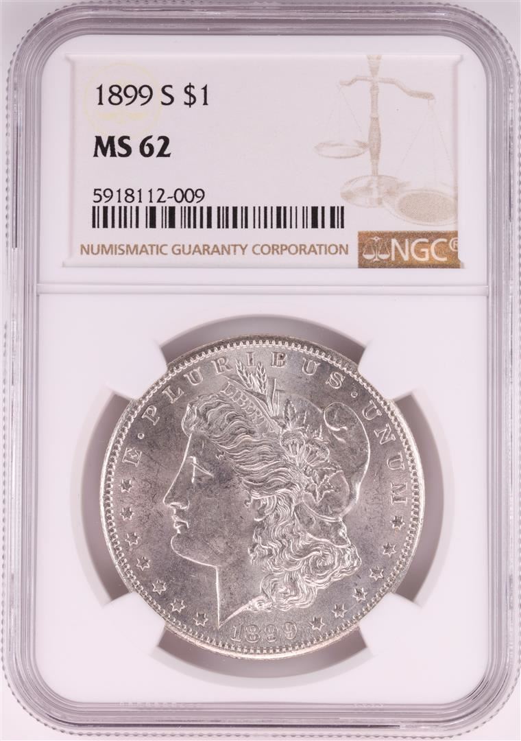 One 1899-S $1 Morgan Silver Dollar Coin NGC MS62. NGC Certified.