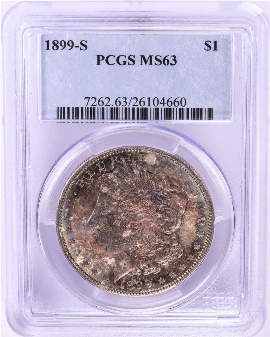 One 1899-S $1 Morgan Silver Dollar Coin PCGS MS63 Nice Toning. PCGS Graded.