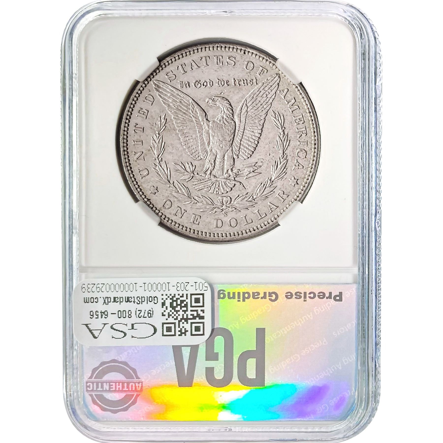 e. Coins sold referencing a third-party grading service are sold “AS IS” without any express or implied warranty, except for a guarantee by GSA that they are genuine. Removal or alteration of the holder, voids all of Bidder’s claims concerning that Product. Certain warranties may be available from the grading services and Bidders are referred to them for further details: Numismatic Guaranty Corporation (NGC), PO Box 4776, Sarasota, FL 34230, www.ngccoin.com/services/writtenguarantee.asp; Professional Coin Grading Services (PCGS), PO Box 9458, Newport Beach, CA 92658, www.pcgs.com/guarantee.html; ANACS, 6555 S. Kenton St., Ste. 303, Englewood, CO 80111; and Independent Coin Grading Co. (ICG), 7901 East Bellview, Ave., Suite 50, Englewood, CO 80111.