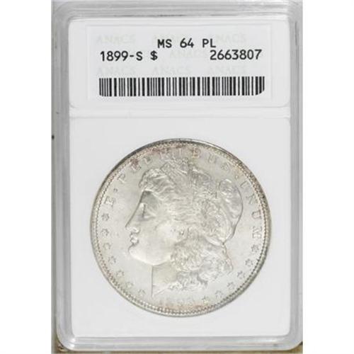<B>1899-S $1 MS64 Prooflike ANACS.</B></I> NGC Census: (54/13). PCGS Population (66/38). Numismedia Wsl. Price for NGC/PCGS coin in MS64: $720. (#7263)<BR><BR><B>Coin Engraver:</B> George T. Morgan<BR><BR><b>Shipping:</b> Coins & Currency (<a target="_blank" href="http://www.heritageauctions.com/common/shipping.php">view shipping information</a>)