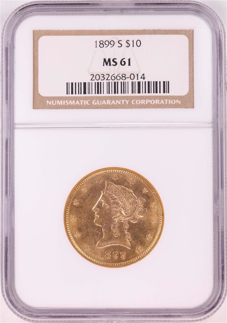 One 1899-S $10 Liberty Head Eagle Gold Coin NGC MS61. NGC Certified.