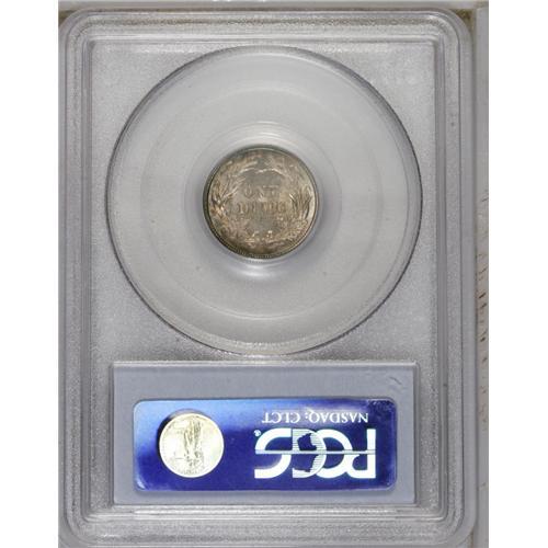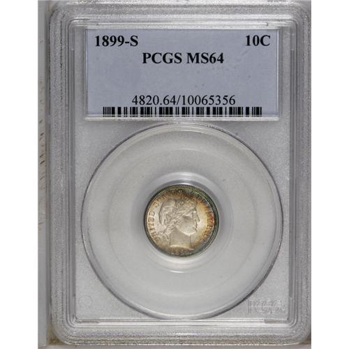 1899-S 10C MS64 PCGS. Azure and gold crescents appear
