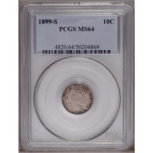 <B>1899-S<10C> MS64 PCGS.</B></I> Russet-brown and cream-gray colors enrich this well preserved and boldly struck near-Gem. An original and attractive example of this better date. Population: 21 in 64, 14 finer (1/06).