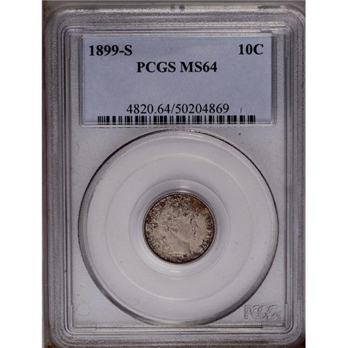 <B>1899-S<10C> MS64 PCGS.</B></I> Russet-brown and cream-gray colors enrich this well preserved and boldly struck near-Gem. An original and attractive example of this better date. Population: 24 in 64, 15 finer (6/06).
