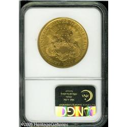 <B>1899-S $20 MS60 NGC.</B></I> Sharply struck, with semi-bright peach-gold surfaces. A few scattered light marks are noted on the obverse. Lot:9285
