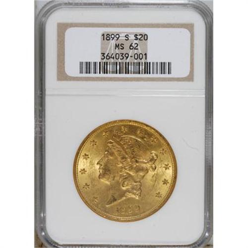 1899-S $20 MS62 NGC. NGC Census: (2586/1290). PCGS
