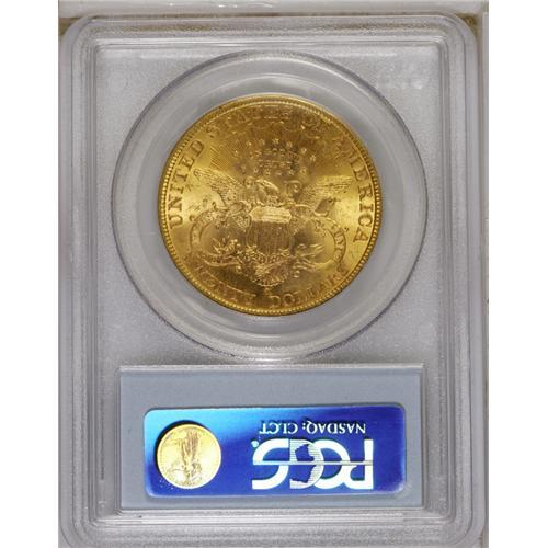 1899-S $20 MS62 PCGS. A maize-yellow piece with wheat
