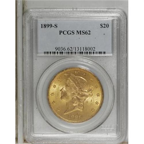 1899-S $20 MS62 PCGS. PCGS Population (1940/1195). NGC