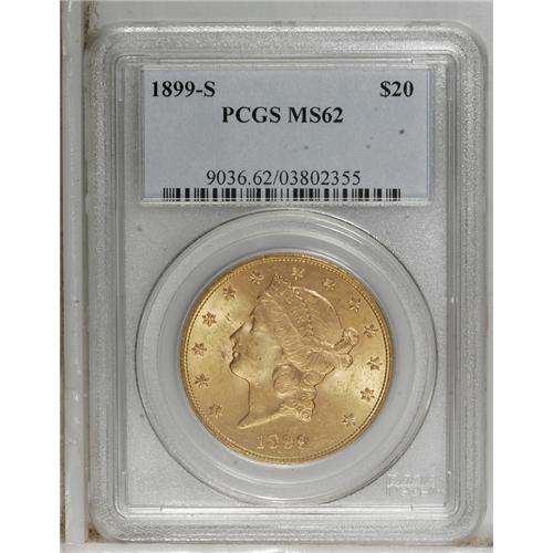 1899-S $20 MS62 PCGS. PCGS Population (1941/1195).