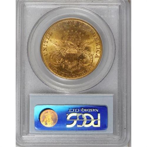 <B>1899-S $20 MS62 PCGS.</B></I> PCGS Population (2009/1232). NGC Census: (2607/1293). Mintage: 2,010,300. Numismedia Wsl. Price for NGC/PCGS coin in MS62: $800. (#9036)<BR><BR><B>Coin Engraver:</B> James B. Longacre<BR><BR><b>Shipping:</b> Coins & Currency (<a target="_blank" href="http://www.heritageauctions.com/common/shipping.php">view shipping information</a>)