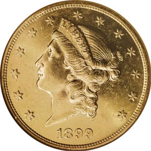 <B>1899-S $20 MS62 Prooflike NGC.</B></I> With just over 2 million examples struck, the 1899-S has an appreciable population of certified Prooflike pieces, though such coins represent only a tiny fraction of the original mintage. This gleaming yellow-gold piece exhibits excellent reflectivity on each side and crisp detail, though the obverse shows a number of scattered abrasions that account for the grade. Census: 5 in 62 Prooflike, 7 finer (8/07).<BR><BR><B>Coin Engraver:</B> James B. Longacre<BR><BR><b>Shipping:</b> Coins & Currency (<a target="_blank" href="http://www.heritageauctions.com/common/shipping.php">view shipping information</a>)