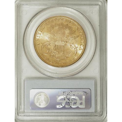 <B>1899-S $20 MS64 PCGS.</B></I> The olive-gold toning is unusually deep, increasing the eye appeal of this well struck near-Gem. A few superficial field grazes prevent an even higher grade assessment. PCGS has graded just three examples of this issue finer (4/07).<BR><BR><b>Shipping:</b> Coins & Currency (<a target="_blank" href="http://www.heritageauctions.com/common/shipping.php">view shipping information</a>)