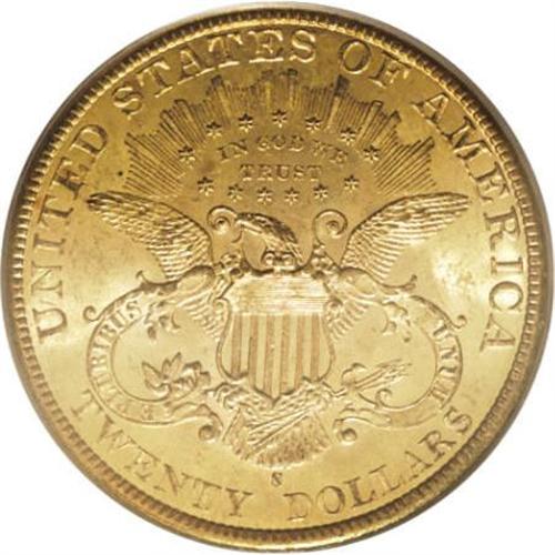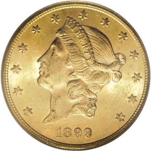 <B>1899-S $20 MS64 PCGS.</B></I> Glowing luster emanates from the peach-gold surfaces tinted with lime-green. The strike is sharp, and none of the few minute marks scattered about are worthy of individual mention. Large numbers of the '99-S are known through the MS63 grade level, but the population drops precipitously in MS64.<BR><BR><B>Coin Engraver:</B> James B. Longacre<BR><BR><b>Shipping:</b> Coins & Currency (<a target="_blank" href="http://www.heritageauctions.com/common/shipping.php">view shipping information</a>)