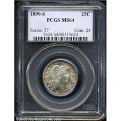 <TABLE cellSpacing=0 cellPadding=0 width="100%" bgColor=#000000 border=0><TBODY><TR><TD width="100%"><TABLE cellSpacing=1 cellPadding=3 width="100%" border=0><TBODY><TR><TD width="100%" bgColor=#79735c><FONT face=arial color=#ffffff size=3><B>Description</B> </FONT></TD></TR><TR><TD width="100%" bgColor=#ffffff><FONT face=arial size=2><B>1899-S 25C MS64 PCGS.</B></I> Highly lustrous with a partial layering of original, multicolored patina. Fully detailed throughout, a few small contact marks on the central obverse device limit the grade. </FONT></TD></TR></TBODY></TABLE></TD></TR></TBODY></TABLE><BR><A name=PricesRealized></A><TABLE cellSpacing=0 cellPadding=0 width="100%" bgColor=#000000 border=0><TBODY><TR><TD width="100%"><TABLE cellSpacing=1 cellPadding=3 width="100%" border=0><TBODY><TR><TD width="100%" bgColor=#79735c><A name=PR><FONT face=arial color=#ffffff size=3><B>Previous Prices from Heritage Auctions</B> </FONT></A></TD></TR><TR><TD bgColor=#f6f6ed>No Prior Data Recorded </TD></TR><TR><TD bgColor=#ffffff><FONT face=arial size=1 ?>PLEASE NOTE: All prices realized reflect the final hammer price PLUS the buyer's premium in auctions that charge a buyer's premium. Each item has a notation at the top of the listing indicating whether that lot included a buyer's premium. Example: A item that sells with a final hammer price of $100 and a 20% buyer's premium will display with a price realized of $120. All information listed is intended to be as accurate as possible, but errors are possible. Please use this guide carefully and inform us of any inaccuracies. </FONT></TD></TR></TBODY></TABLE></TD></TR></TBODY></TABLE><BR><TABLE cellSpacing=0 cellPadding=0 width="100%" bgColor=#000000 border=0><TBODY><TR><TD width="100%"><TABLE cellSpacing=1 cellPadding=3 width="100%" border=0><TBODY><TR><TD width="100%" bgColor=#79735c colSpan=6><FONT face=arial color=#ffffff size=3><B>Price Guide*</B> </FONT></TD></TR><TR bgColor=#f6f6ed><TD align=middle><B>Grade</B> </TD><TD align=middle><B>Coin World<BR>(Trends)</B> </TD><TD align=middle><B>Numismedia<BR>Retail</B> </TD><TD align=middle><B>Numismedia<BR>Wholesale</B> </TD><TD align=middle><B>Coin<BR>Universe</B> </TD><TD align=middle><B>Heritage<BR>Value Index</B> </TD></TR><TR bgColor=#ffffff><TD align=middle>63</TD><TD align=right>$1,200.00</TD><TD align=right>---</TD><TD align=right>$1,000.00</TD><TD align=right>$1,250.00</TD><TD align=right>$837.50</TD></TR><TR style="FONT-WEIGHT: bold" bgColor=#cccfdd><TD align=middle>64</TD><TD align=right>$1,850.00</TD><TD align=right>---</TD><TD align=right>$2,125.00</TD><TD align=right>$1,825.00</TD><TD align=right>$1,232.50</TD></TR><TR bgColor=#ffffff><TD align=middle>65</TD><TD align=right>$3,500.00</TD><TD align=right>---</TD><TD align=right>$3,125.00</TD><TD align=right>$3,900.00</TD><TD align=right>$2,566.67</TD></TR><TR bgColor=#ffffff><TD colSpan=6><FONT size=1>*All information listed is intended to be as accurate as possible, but errors are possible. No item may be returned or refused based on this information which is provided as a service to our customers. You should contact each pricing source directly to determine the accuracy of this information. </FONT></TD></TR></TBODY></TABLE></TD></TR></TBODY></TABLE><BR><TABLE cellSpacing=0 cellPadding=0 width="100%" bgColor=#000000 border=0><TBODY><TR><TD width="100%"><TABLE cellSpacing=1 cellPadding=3 width="100%" border=0><TBODY><TR><TD width="100%" bgColor=#79735c><FONT face=arial color=#ffffff size=3><B>Population Guide</B> </FONT></TD></TR><TR bgColor=#ffffff><TD align=middle><!-- Begin Output of Population Grid--><TABLE cellSpacing=0 cellPadding=0 width="100%" border=0><TBODY><TR><TD vAlign=center><TABLE cellSpacing=0 width="100%" border=1 cellsadding="3"><TBODY><TR><TD vAlign=center><TABLE cellSpacing=0 cellPadding=3 width="100%" border=1><TBODY><TR><TD vAlign=center align=middle bgColor=#f0f1e8 colSpan=2 <CENTER><FONT face=Arial size=2><B>PCGS Pop </B></FONT><CENTER></CENTER></TD><TD vAlign=center align=middle bgColor=#f0f1e8 colSpan=2><CENTER><FONT face=Arial size=2><B>NGC Pop</B></CENTER></FONT></TD></TR><TR><TD vAlign=center><FONT face=Arial size=2>(64)</FONT> </TD><TD vAlign=center align=right><FONT face=Arial size=2>7</FONT> </TD><TD vAlign=center><FONT face=Arial size=2>(64)</FONT> </TD><TD vAlign=center align=right><FONT face=Arial size=2>7</FONT> </TD></TR><TR><TD vAlign=center><FONT face=Arial size=2>(>64)</FONT> </TD><TD vAlign=center align=right><FONT face=Arial size=2>11</FONT> </TD><TD vAlign=center><FONT face=Arial size=2>(>64)</FONT> </TD><TD vAlign=center align=right><FONT face=Arial size=2>18</FONT> </TD></TR></TBODY></TABLE></TD></TR></TBODY></TABLE></TD></TR></TBODY></TABLE><!-- End Output of Population Grid--> Important notice: Heritage usually auctions material at the rate of 200-250 lots per hour. On some occasions eBay Live bid software or the Internet may not be able to keep up with the pace of the auction. We recommend placing a realistic absentee bid now as insurance to avoid disappointment. Occasionally the auctioneer may eliminate or reject an eBay Live bid, and the auctioneer may also reopen a lot after the close of the eBay live bidding (usually because we missed an audience bid), and may reject your bid even if it shows you as the winning bidder. By bidding via eBay Live, you agree that Heritage may award the lot to another bidder at its sole discretion under the circumstances described above or any other reasonable circumstances. Also please note that all Heritage lots purchased through eBay Live carry a 20% Buyer's Premium. Please make sure you read the Terms and Conditions before you bid.</TD></TR></TBODY></TABLE></TD></TR></TBODY></TABLE>